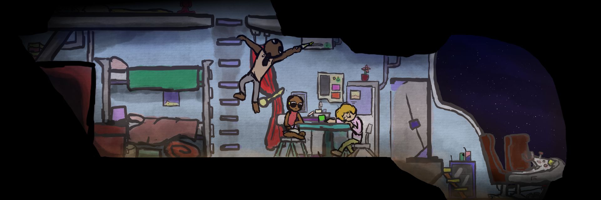 Meanwhile, Troth dutifully and silently steered their vessel out of Prosper's orbit-space, and - once they'd cleared all short-range communication - set them on a cruising speed in the direction of the bracelet's guidance. Once they were outside the mandatory 'manual control' range of Prosper, he would engage the automatic short-range warp and effectively bend small distances of empty space to cut down on travel time.